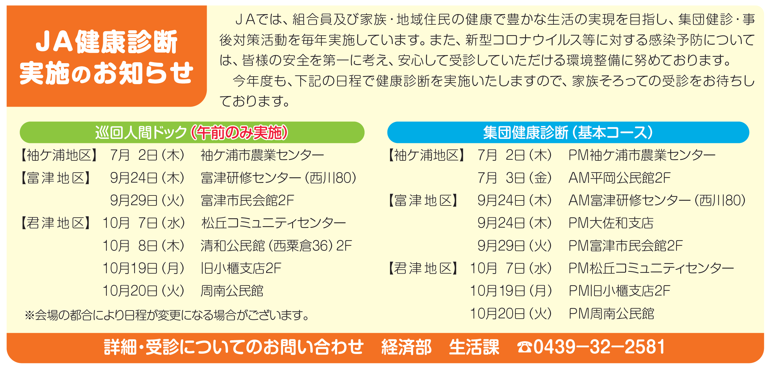 JA健康診断実施のお知らせ